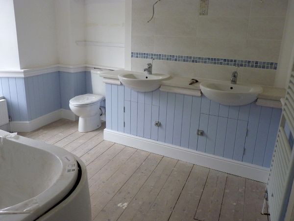 The roof was removed and both interior and exterior walls were stripped (and in some instances completely replaced!) Care was taken to photograph and either safely remove or protect the period features. The chimney stack was unstable and was rebuilt. A new cut roof was installed that allowed for the original dormer window on the front elevation to be re-provided. A new Oil Central Heating system was provided and of course the house was completely re-wired. A wood burner was also installed. Quality Kitchens and Bathrooms were installed. The garden was landscaped and with a external decking and Barbeque area. In total 6 Bathrooms with 5 ensuite Bath/ shower rooms were provided. External detailing and cornicing was restored or re-provided to match the original.